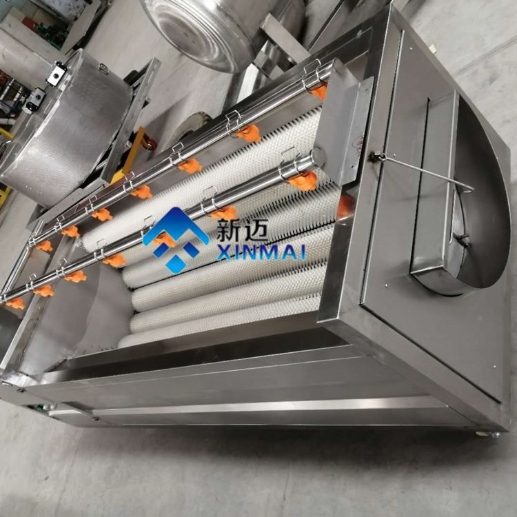 采用不銹鋼SUS304材料制作,符合出口食品衛生要求。毛刷清洗機是我公司設計的一款小型的清洗設備,其占地面積的小,清洗效果好,價格低廉,深受廣大客戶的青睞。主要針對塊狀的產品清洗,比如:土豆,胡蘿卜,山芋,馬鈴薯,紅薯,瑪卡等農副產品,魚類、扇貝、貝殼類。毛輥清洗機整機采用304不銹鋼焊接而成,美觀大方,設計合理,結構簡單,操作更簡單,便于日常維護。設備主要由框架,噴淋管,毛刷,電器,電機等幾部分組合而成。我公司生產的毛刷清洗機毛刷采用高品質,實心輥,具有不掉毛,耐磨,穩定性強等特點。毛輥清洗機配備8-13根毛輥,常用的是9根毛輥。毛刷分為常規跟波浪式兩款。根據產品的特性,配備不同的毛刷款式。毛輥清洗機運轉時,產品跟隨毛輥轉動。360度的旋轉,360度的清洗,在毛刷跟產品滾動的同時,噴淋水對產品進行沖刷,保證產品清洗無死角,有效的去除產品表面及夾縫的污垢達到良好的清洗效果。并且節省水能。毛輥清洗機的雜質排出主要原理是噴淋水的沖刷,通過毛輥的運轉,將清洗下來的雜質轉送到設備的底部,設備底部設計有回收料斗,將雜質進行統一集中排出。清洗效率,為企業降低產品的生產成本。目前常規生產的型號有:1000型,1500型,1800型,三款型號,是我公司吸取了國內外對瓜果加工機械的特點,取其優點設計制作。簡單,耗能低,占地小,效率高是它具有的特點。