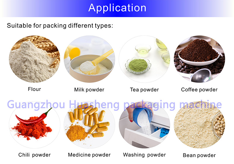 機器操作流程 | 裝上包裝卷膜-人工裝料到機器料斗(可選自動上料機)-下料重量設置(設置螺旋圈數及轉速)-設置包裝機封口溫度及相關參數-啟動機器及打碼機開關-確認空袋美觀-啟動下料開關-機器自動工作 |