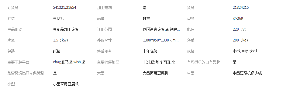 主營: 豆制品加工 休閑食品加工 炊事設備