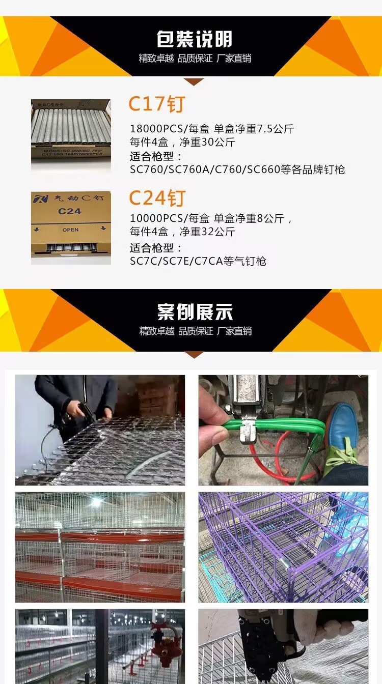 c型釘雞籠釘鳥籠釘c17c24座椅槍釘扎網c型釘石籠網專用
