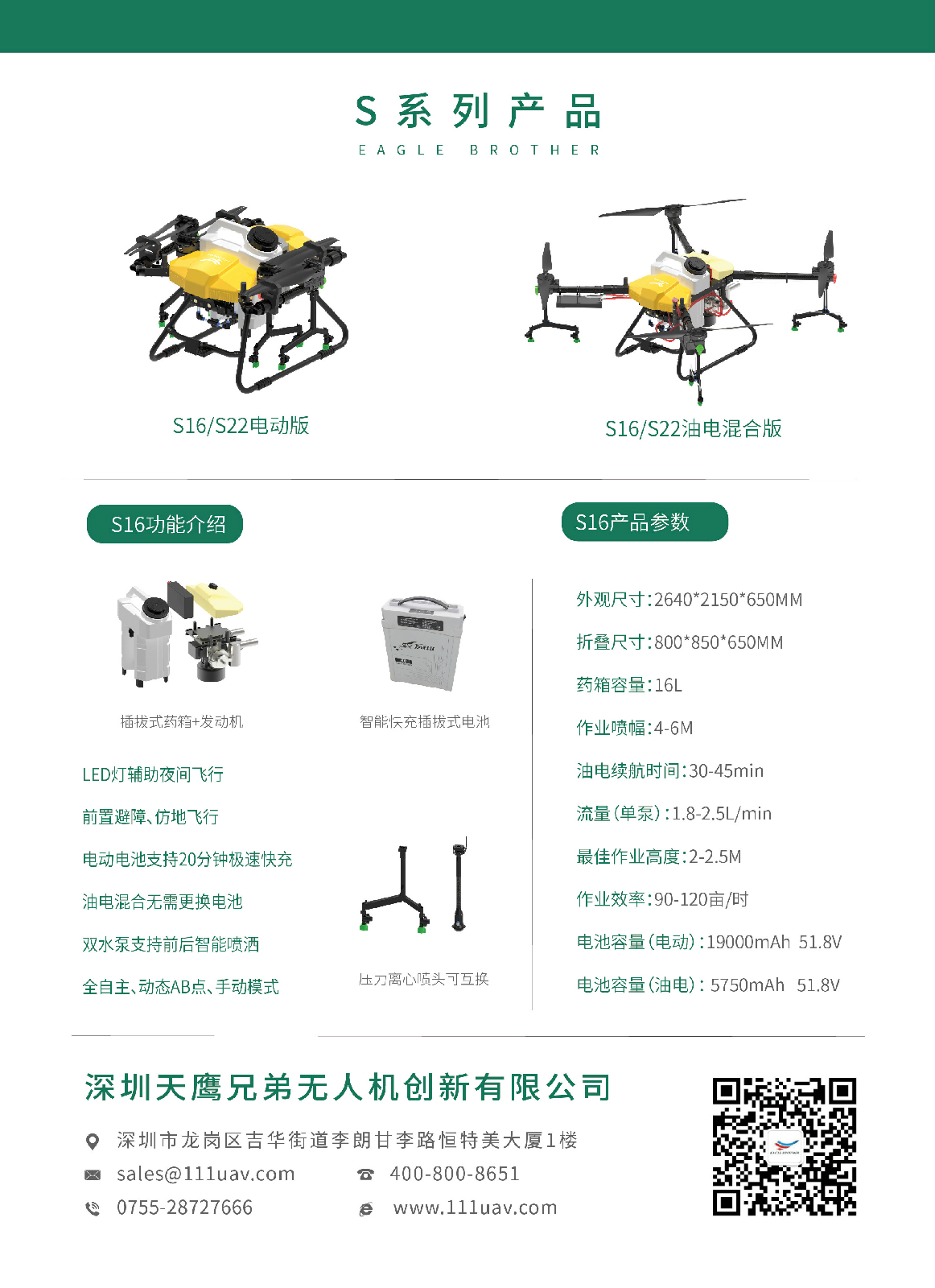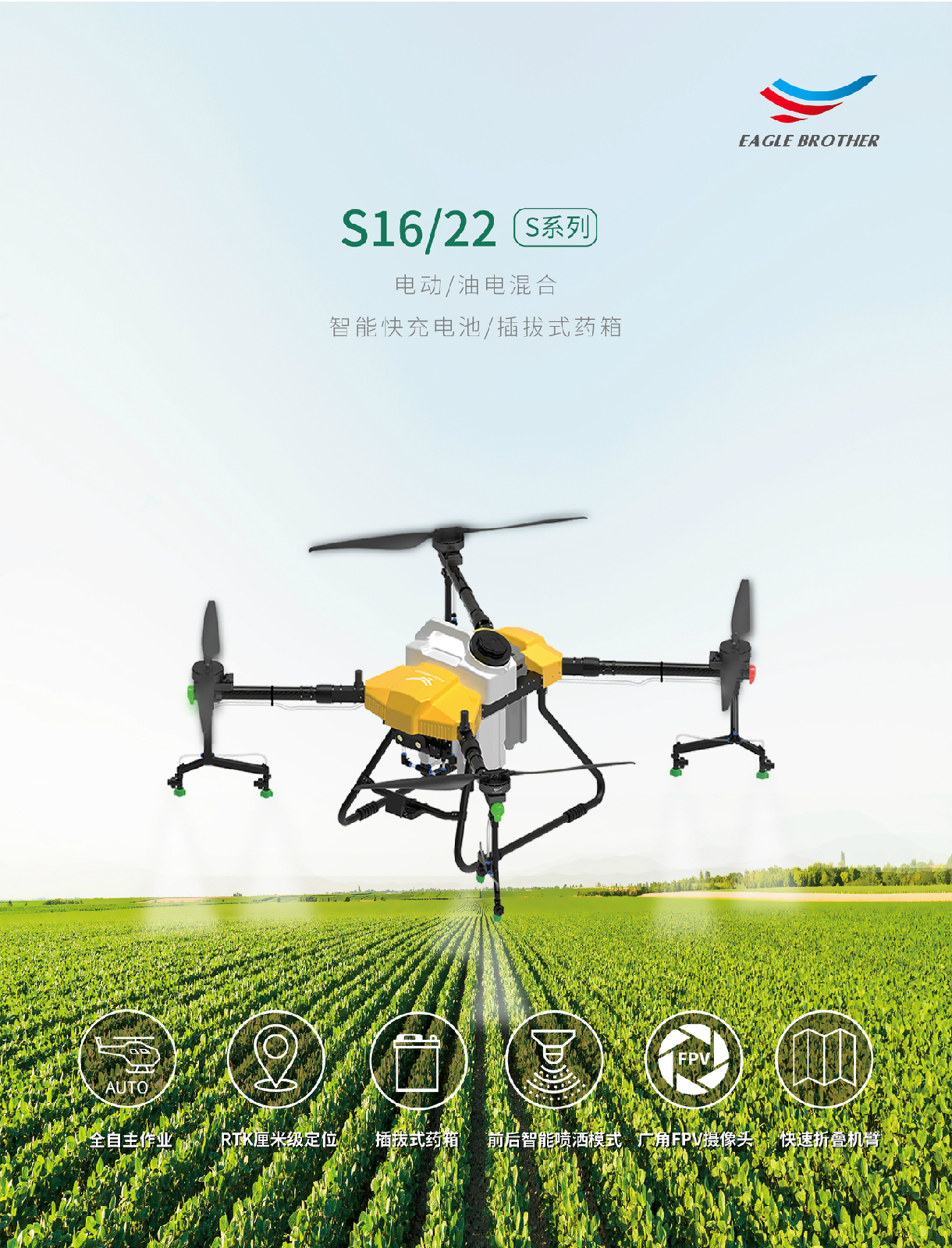 天鷹兄弟S16TY-S16多旋翼電動/油電混合植保無人機(電議)
