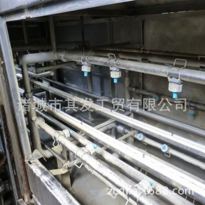 其發(fā)牌ZJ-5800型塑料箱、塑料筐清洗機(jī),洗筐機(jī)設(shè)備除電機(jī)、噴嘴外均采用SUS304不銹鋼制作噴嘴. 清洗分為三段第一段為熱堿水,第二段為熱清水,第三段為自來水。三段噴淋水除第三段自來水外都有獨立循環(huán)過濾水箱,第三段自來水作為補(bǔ)充水回收至第二段水箱加熱使用過后部分污水被自動排出。第二水箱內(nèi)設(shè)有蒸汽加熱管,溫度從常溫至60°C自由設(shè)定、自動恒溫。 第一段水泵功率5.5KW,第二段水泵功率7.5KW,第三段水泵功率0.75KW,輸送帶電機(jī)功率0.75KW,輸送速度3-15m/min可調(diào)。