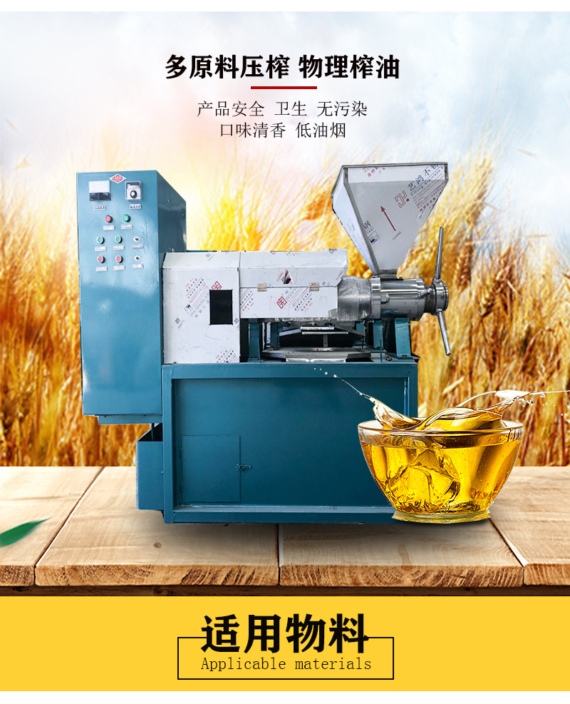 新型全自動多功能螺旋榨油機(jī)是引進(jìn)國外先進(jìn)技術(shù),根據(jù)中國國情進(jìn)行研制改進(jìn)的新型榨油機(jī)設(shè)備,該榨油機(jī)占地面積小,生產(chǎn)效率高,具有選材考究、結(jié)構(gòu)合理、外形美觀、質(zhì)量可靠、操作簡便、省工省電等優(yōu)點,更具備自動溫控、一次榨凈、出油率高、真空過濾、生產(chǎn)效率高等特殊優(yōu)點。該多功能全自動螺旋榨油機(jī)更可一機(jī)多用,對芝麻、花生、菜籽、茶籽、大豆、油葵、胡麻、棉籽、玉米、核桃等20多種油料進(jìn)行油品加工。四級壓榨出的油經(jīng)過真空過濾,香濃誘人、晶瑩純正、安全衛(wèi)生,可直接食用或瓶裝出售。