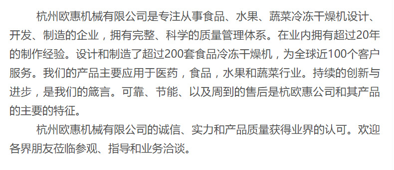主營: 冷凍食品加工 真空干燥機 冷凍干燥機