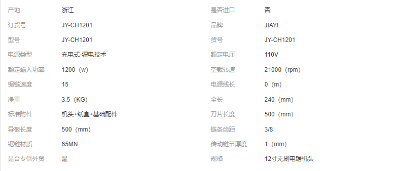 嘉易私模12寸無(wú)刷高鏈速電鏈鋸鋰電充電式專業(yè)伐木戶外帶剎車電鋸