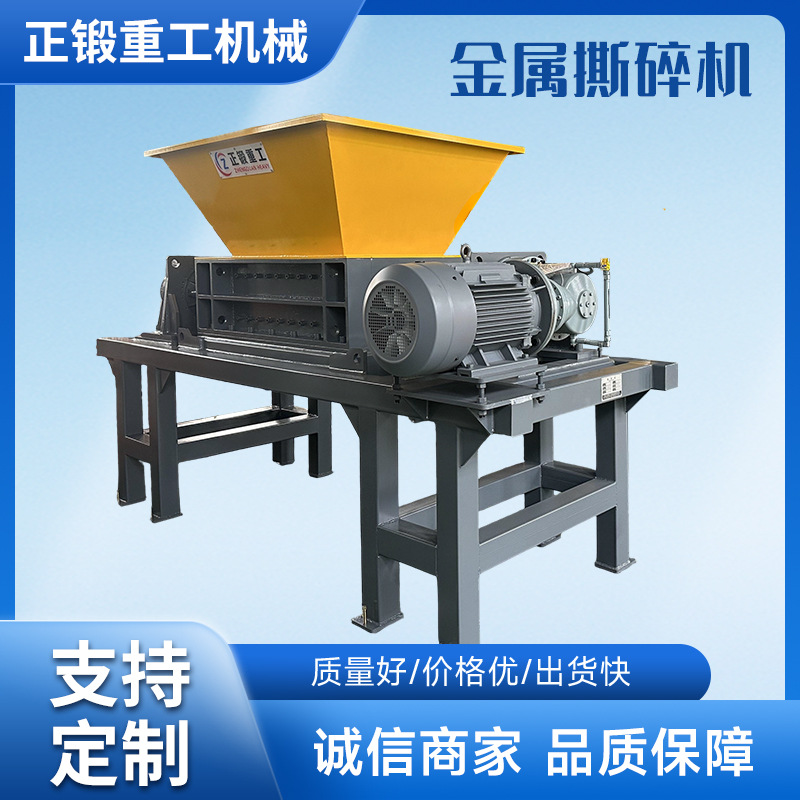 金屬雙軸撕碎機鐵皮廢鐵汽車外殼破碎機刨花彩鋼瓦粉碎設備廠家