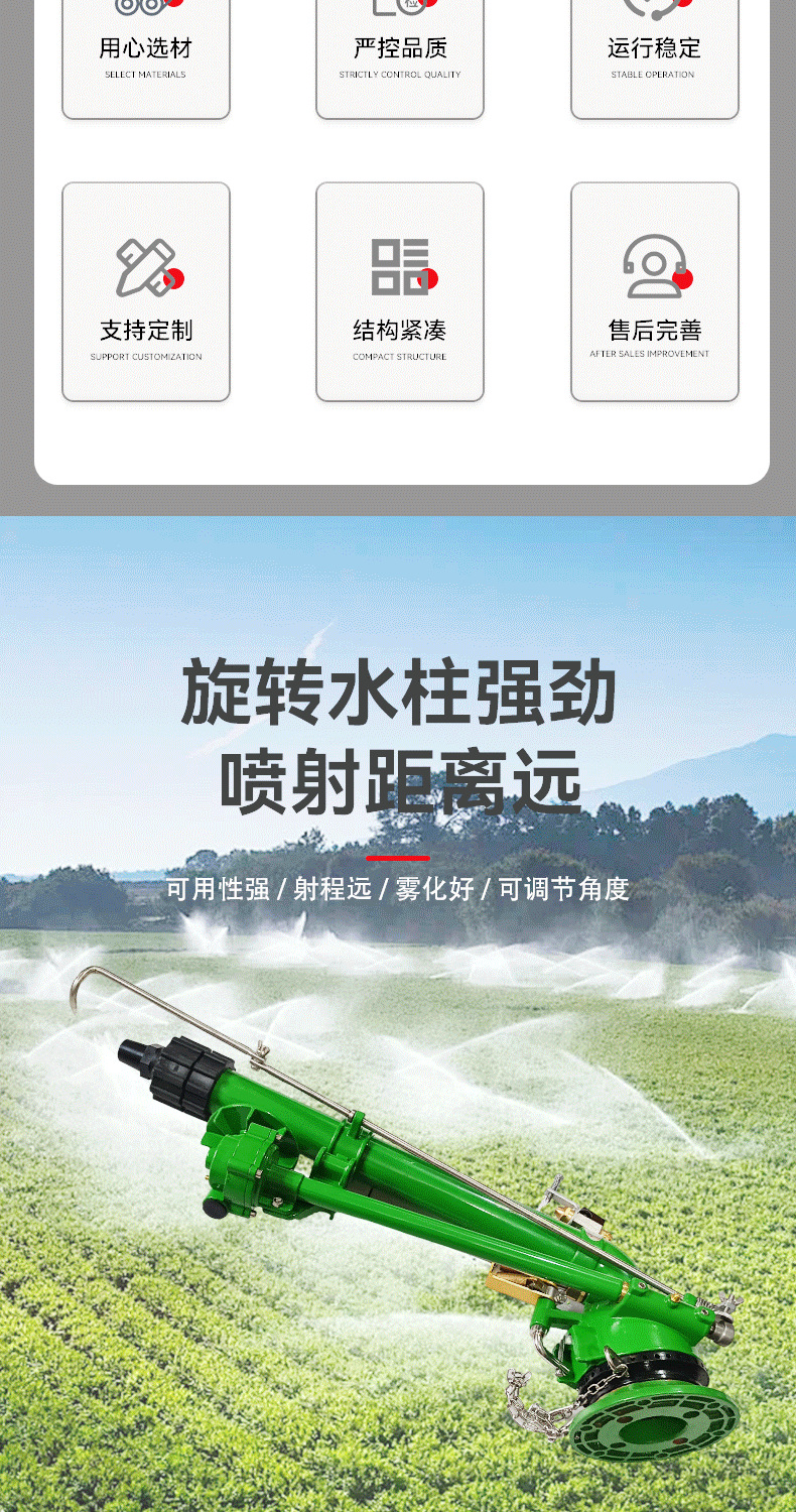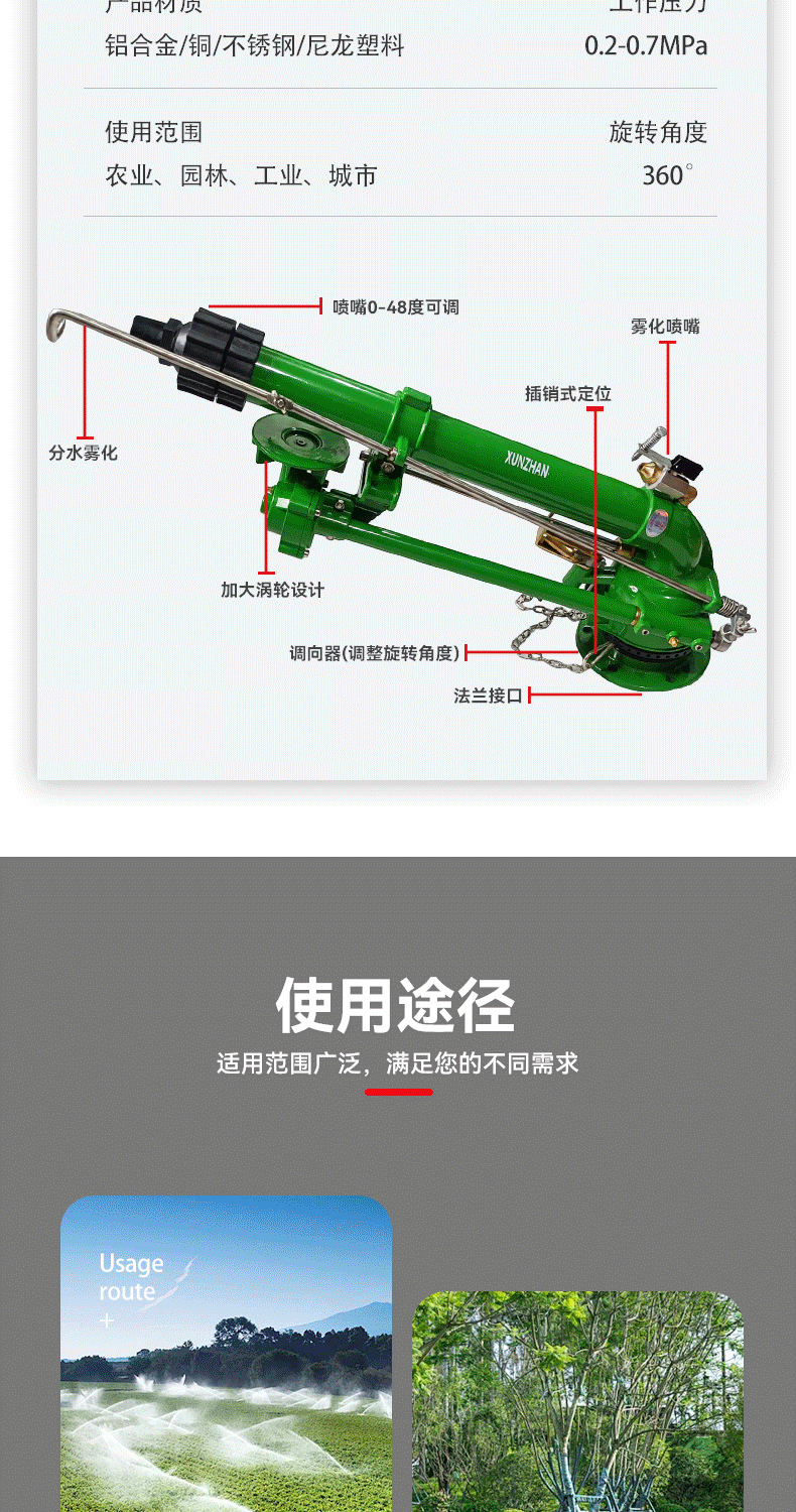 三嘴50渦輪蝸桿噴槍仰角可調高霧化噴槍360自動旋轉農田除塵灌溉