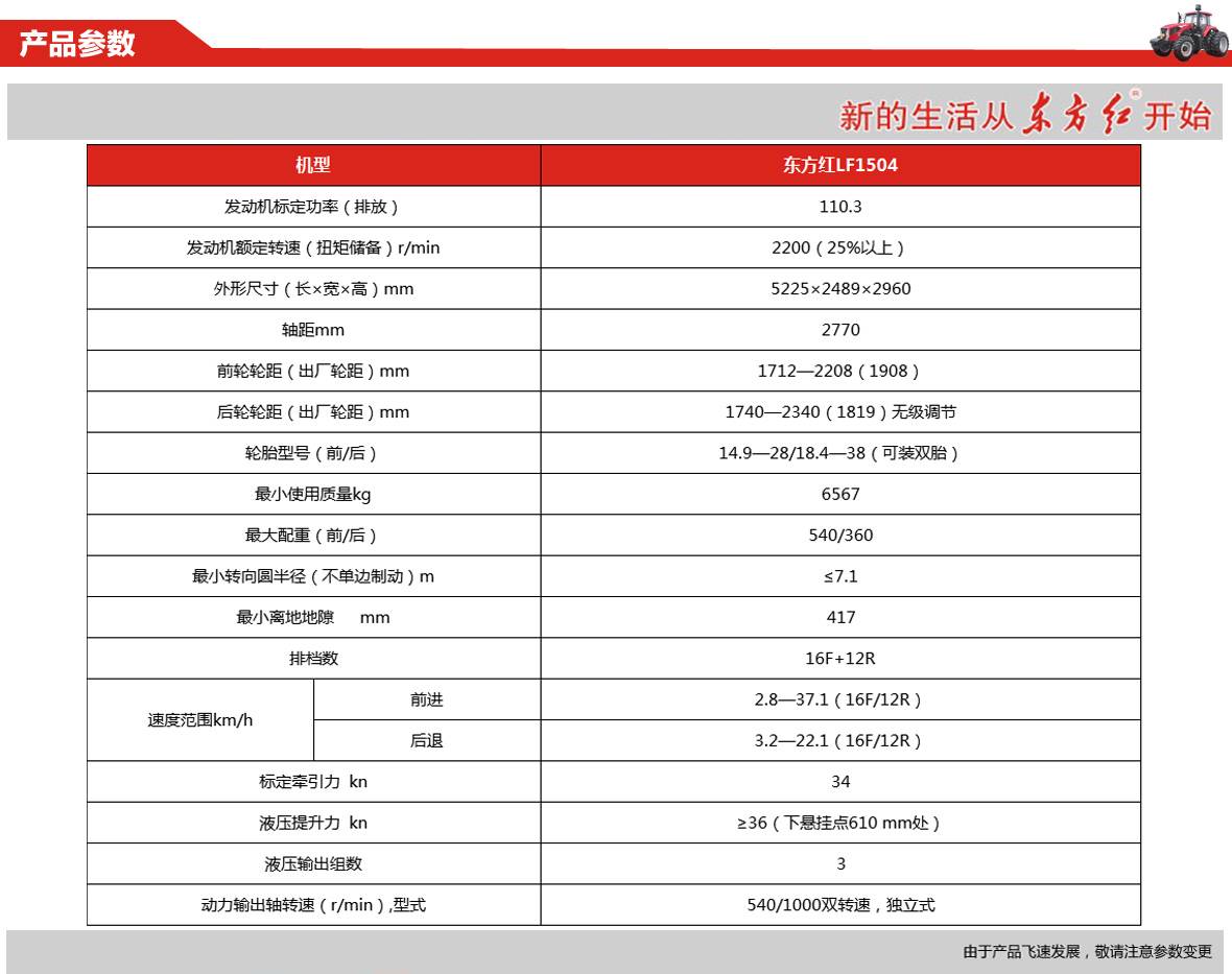 東方紅LF1504動力換擋拖拉機