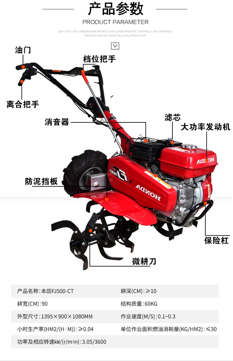 原裝FJ500微耕機(jī)四沖程汽油機(jī)旋耕機(jī)翻土松土除草開(kāi)溝耕作機(jī)