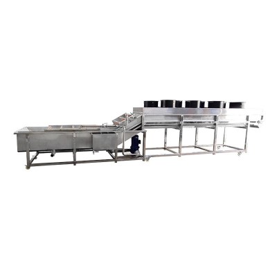 如有需要可以在出料口上方安裝除水風機,設備也可以搭配其他流水線作業。本公司也可以生產整條凈菜加工生產線,清洗烘干線,清洗除水線等流水作業線!韭菜氣泡清洗機