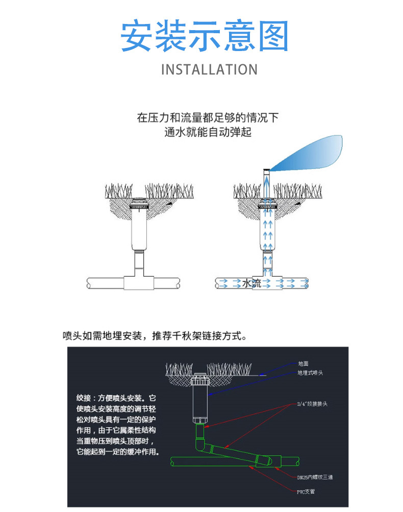 自動升降地埋噴頭園林綠化噴淋草坪灌溉定向地埋式伸縮射線噴頭