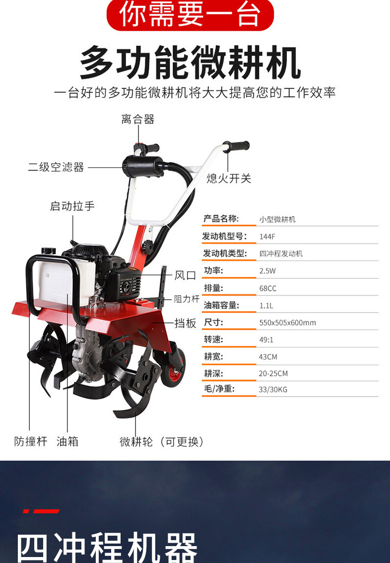 定制跨境批發(fā)手推式微耕機(jī)小型多功能開溝機(jī)汽油旋耕批發(fā)