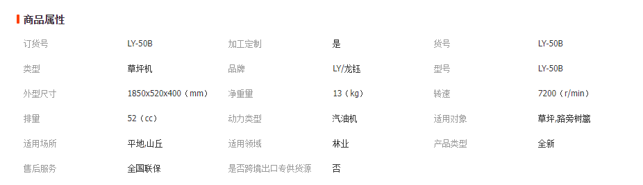 型號:LY-50 功率:1.25kw 發動機形式:風冷兩沖程