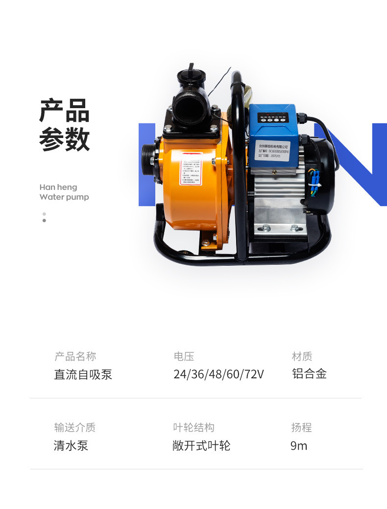 24/48/60/72V無刷變頻直流自吸泵電瓶車農用大流量灌溉抽水泵