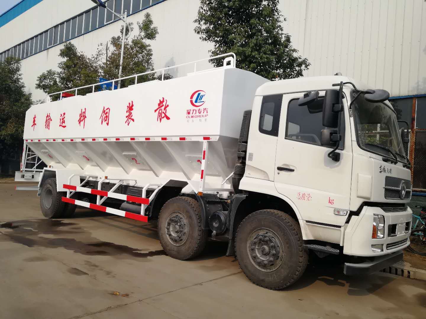 改裝配置:罐體采用武鋼容積板制作,罐體外形尺寸:4300×2380×1900(mm);可按用戶要求做到8~12立方,可以分成多個倉用于裝卸多種不同的飼料,介質:膨化及顆粒飼料、粉料;并可根據用戶實際情況選擇電動絞龍式(三相電配套場所)或者液壓絞龍式(無三相電場所)。電動絞龍針對不同客戶群新研發的、滿足低端市場的新產品,該車不配車載發電機,電動絞龍利用市電三相380V來供電,車輪距較小能適應農村鄉間道路。