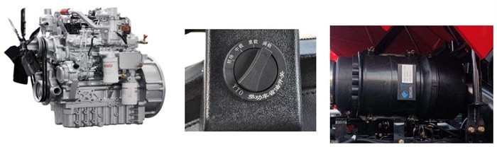 1.配套東方紅6M系列或上柴7H系列高壓共軌、增壓中冷柴油發動機,6M系列采用博世高壓共軌系統+DOC+DPF+SCR;7H系列采用電裝高壓共軌系統+DOC+DPF+SCR、四氣門;動力強勁,油耗低;基配多功率省油開關,多種模式可調,適應多種作業,使用更經濟;6M采用PSD內置干式空濾,帶負壓除塵系統,減少空濾保養時間;基配加注優質防凍液。