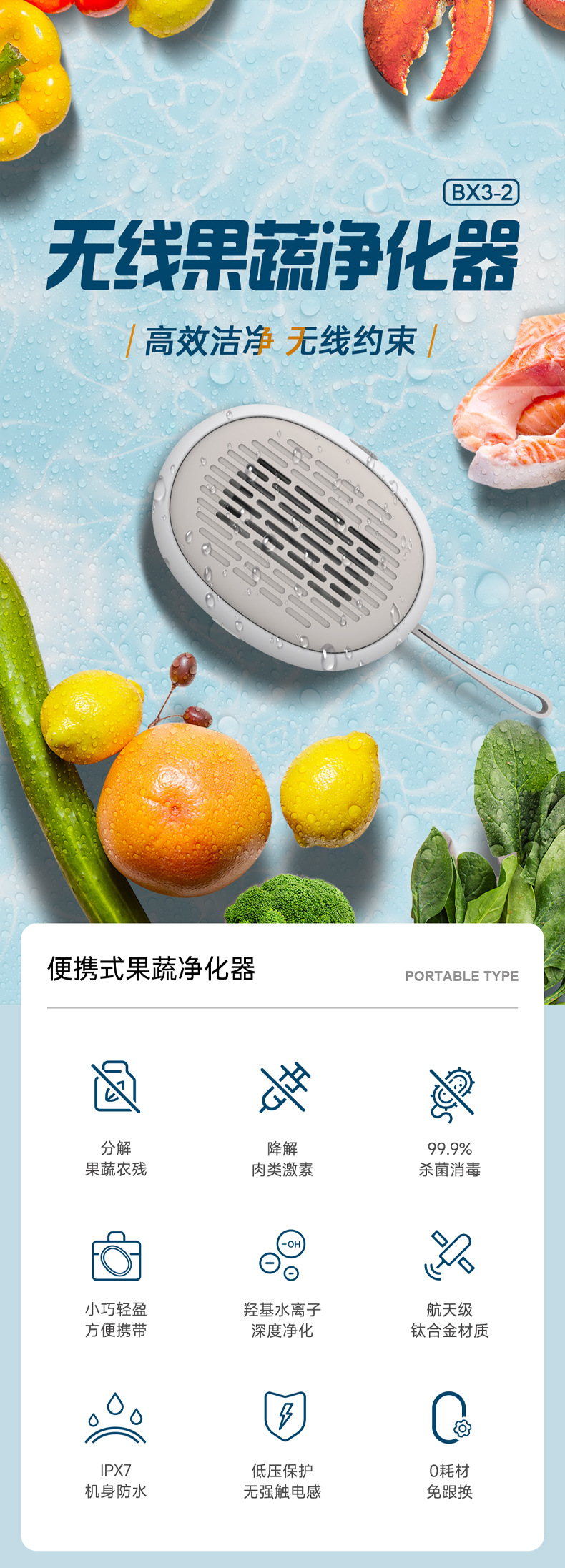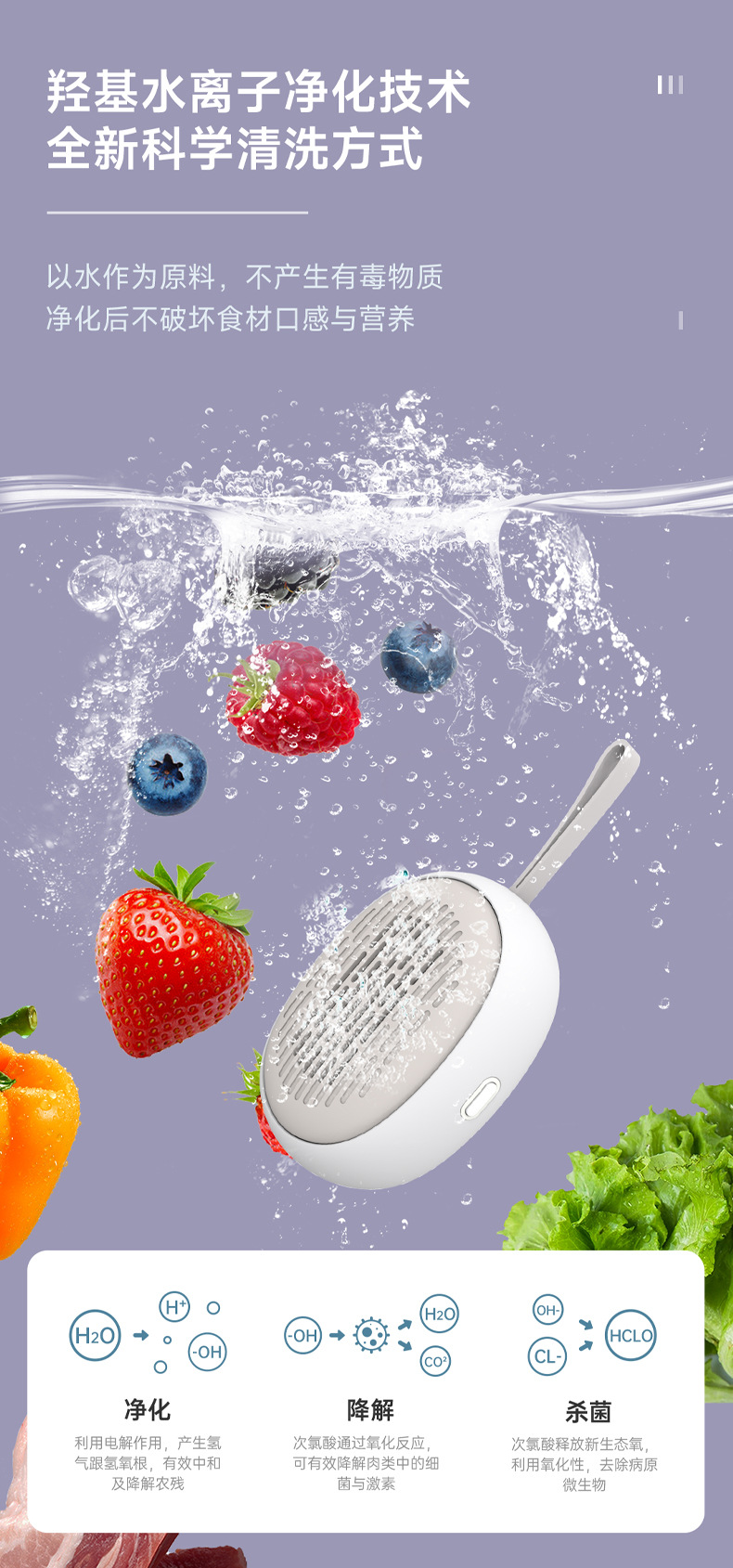 便攜果蔬清洗凈化器家用洗菜凈化消毒清洗機羥基去除農殘降解激素