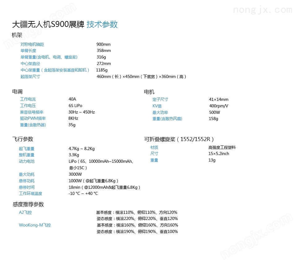 S900 采用 V 型 6 旋翼設(shè)計(jì),主要結(jié)構(gòu)部件均采用質(zhì)量強(qiáng)度比*的碳纖維復(fù)合材料,在保證機(jī)身結(jié)構(gòu)強(qiáng)度、剛度的同時(shí)大幅減輕重量。機(jī)身結(jié)構(gòu)的系統(tǒng)性能兼容 DJI WKM/A2 多旋翼飛控。快速的響應(yīng)頻率使你獲得流暢的操縱感,更輕的質(zhì)量使飛機(jī)的續(xù)航時(shí)間進(jìn)一步加長(zhǎng)。