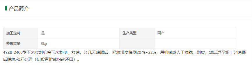 4YZB-2400型玉米收割機技術(shù)參數(shù)