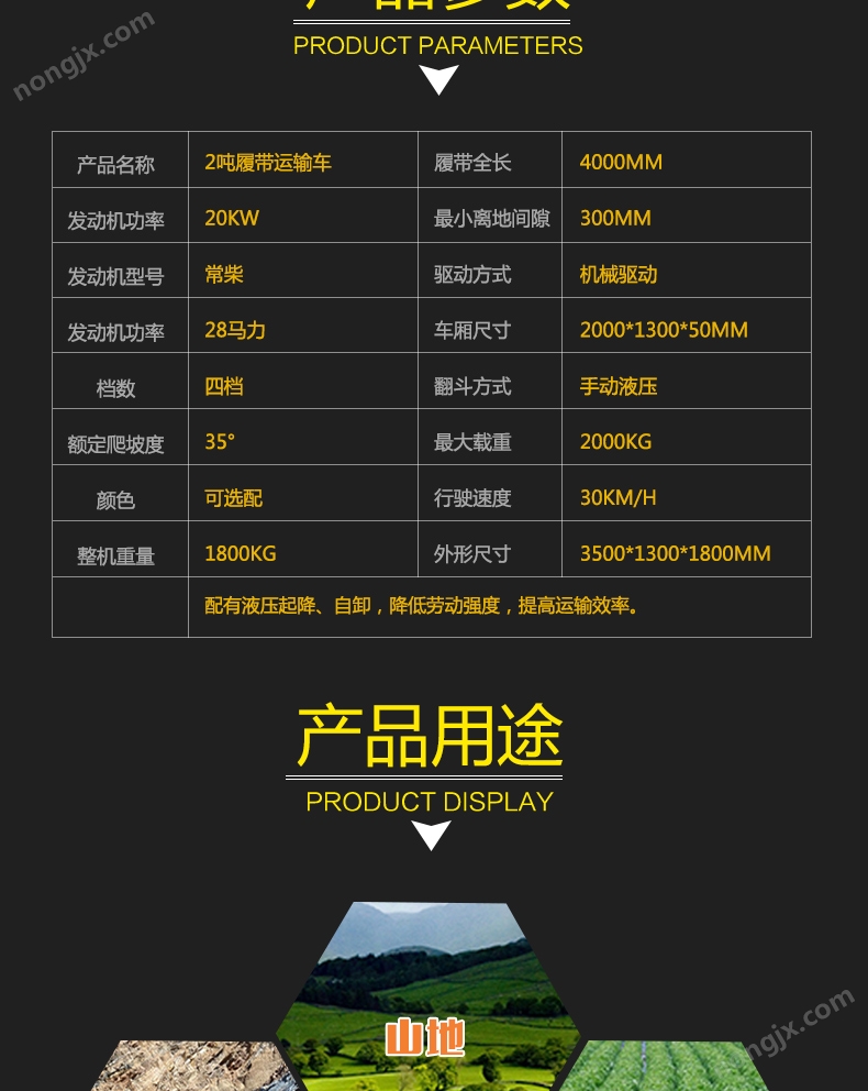 履帶運(yùn)輸車(chē)作業(yè)系統(tǒng)裝置的維護(hù)要點(diǎn):履帶運(yùn)輸車(chē)山林拉木材用爬山車(chē)四不像拖拉機(jī)