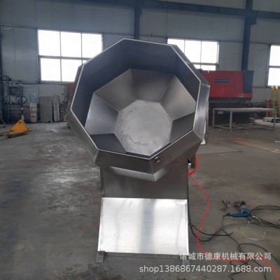 采用減速電機(jī),齒輪傳動(dòng),使油炸的食品不破碎,自動(dòng)攪拌;拌料均勻。操作方便;產(chǎn)量高,不銹鋼制作,滾筒的轉(zhuǎn)速和傾斜度都可以調(diào)節(jié),給粉量也可以控制;可以對(duì)任何食品進(jìn)行調(diào)味、拌料。根據(jù)油炸食品的形狀特點(diǎn)設(shè)計(jì)制造的八角桶拌料機(jī),是油炸食品調(diào)味、拌料的專用設(shè)備,是目前國內(nèi)先進(jìn)的油炸食品調(diào)味設(shè)備。
