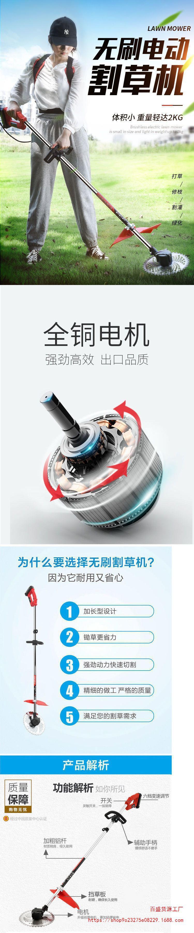 邁越充電式無刷電動割草機小型背負式除草機打草機家用草坪剪批發