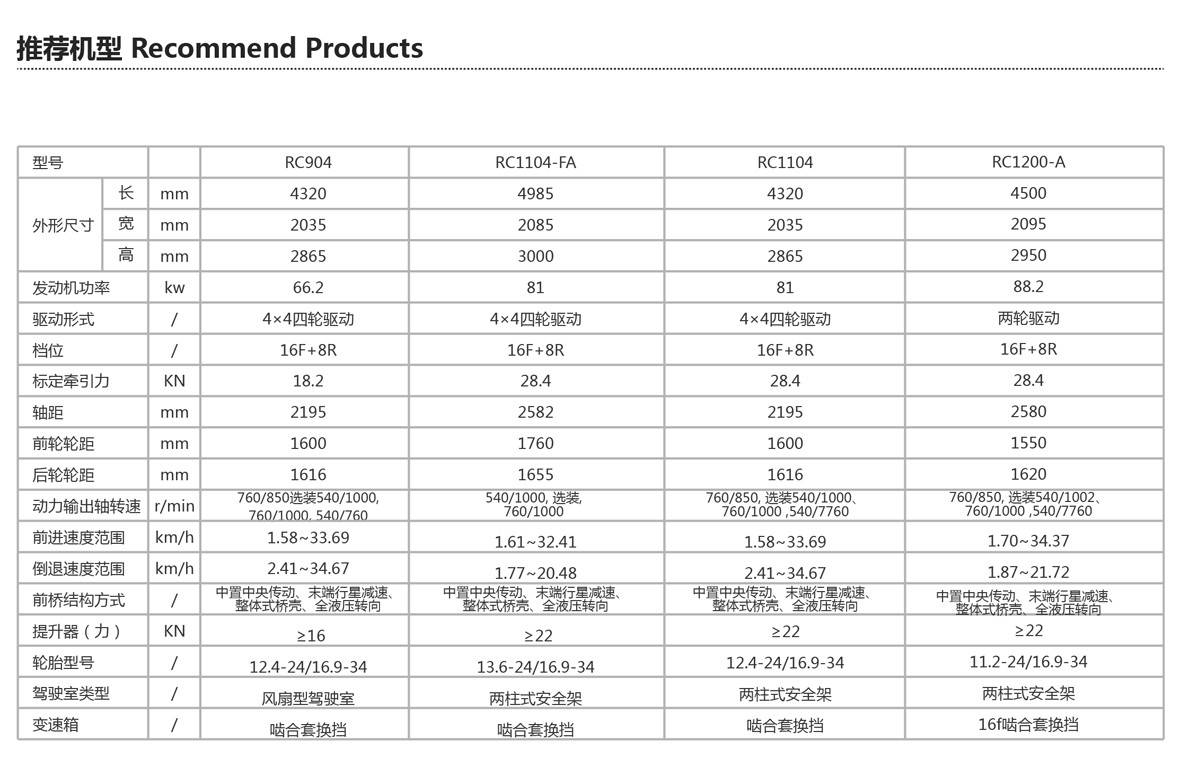 ● 變速箱檔位16F+8R,爬行器16F+8R、選裝8F+4R,速度匹配合理、農藝適應性強、作業效率高、燃油經濟性好;