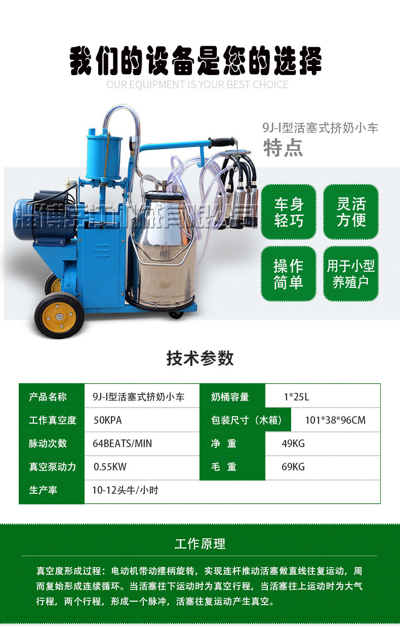 9J-I型活塞式擠奶小車 養(yǎng)殖場(chǎng)移動(dòng)式牛羊擠奶機(jī) 綿羊駱駝?dòng)脭D奶機(jī)