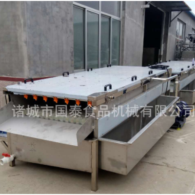 山藥毛輥清洗去雜機采用SUS304不銹鋼制做,設備上部有高壓噴淋對果蔬表面進行沖洗可有效的洗去表面粘有的泥沙、中間有毛輥,通過毛輥的轉動帶動果蔬的前進,并對物料的表面進行刷洗可深層清洗果蔬表面粘連的不易沖洗的雜物,毛輥采用雙層毛刷可以將表面的毛發和纖維物的清除。經毛輥清洗去雜機去除毛發及纖維雜物后,提高了果蔬的潔凈率。下部可進行水收集使之能循環利用,節約了成本。