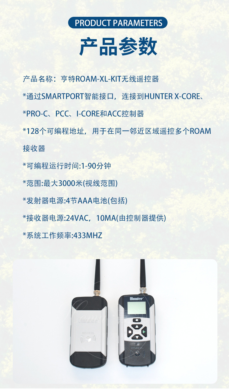 亨特ROAM-XL-KIT無線遙控器灌溉控制器最大范圍300米草坪花圃噴灌