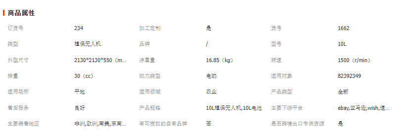 植保無人機是用于農林植物保護作業的無人駕駛飛機,該型無人飛機由飛行平臺、導航飛控、噴灑機構三部分組成,通過地面遙控或導航飛控,來實現噴灑作業,可以噴灑藥劑等。