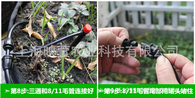 (8/11毛管)8孔紅帽滴頭滴灌套裝可調節戶外陽臺庭院盆栽澆水澆花