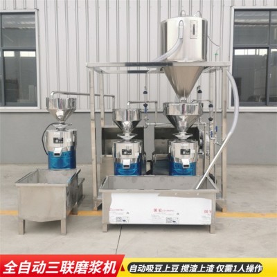 2.三連磨自動(dòng)化程度高,集吸豆、制漿、攪拌、吸渣、清洗于一體。
