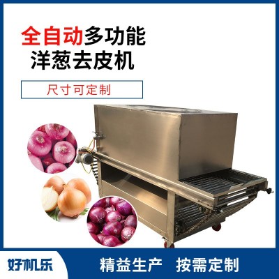 洋蔥去皮機,是以壓縮空氣為動力,采用鏈式輸送倉式脫皮結構,蔥頭通過鏈條傳動進入脫皮倉,洋蔥經過脫皮倉時,以空氣壓縮氣流實現蔥皮分離,洋蔥在行進中不間斷脫皮,脫皮過程中,蔥頭不經過硬度摩擦作用脫皮,洋蔥的完整性、新鮮度得以保留,同時省電節能、清理方便。