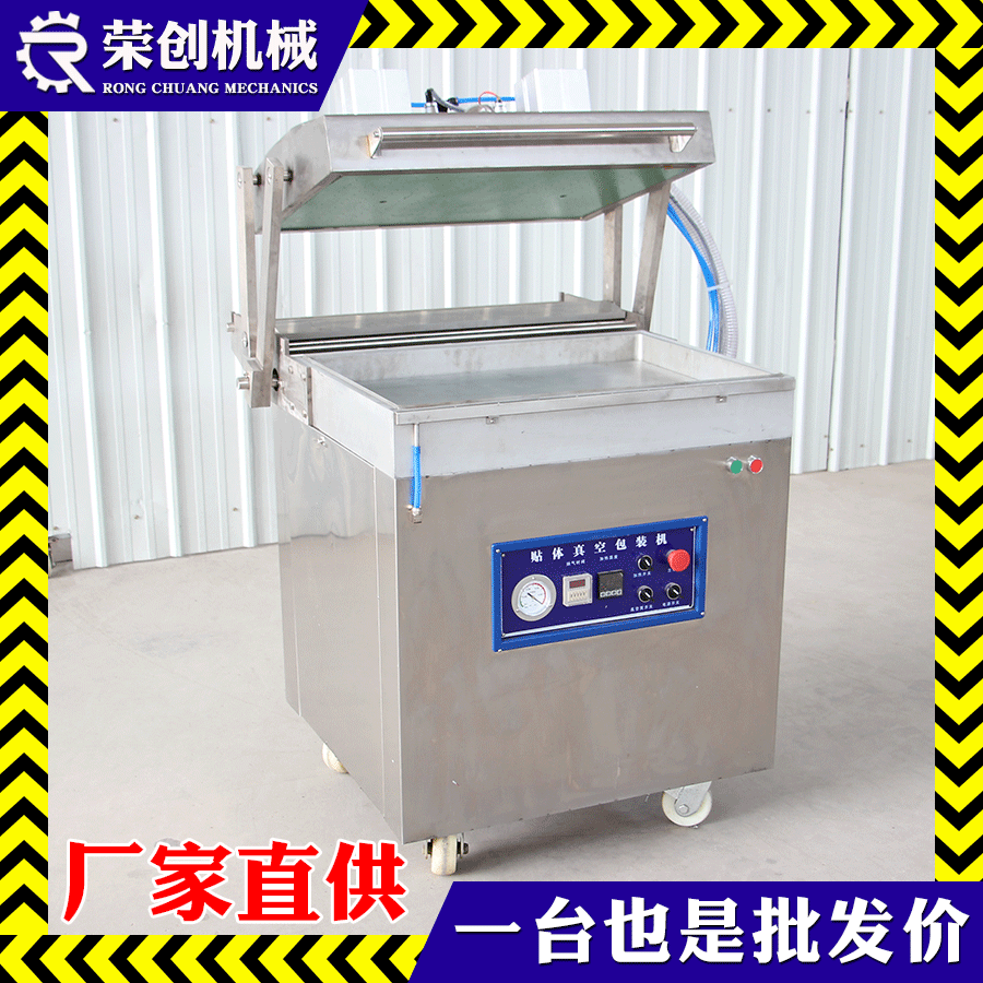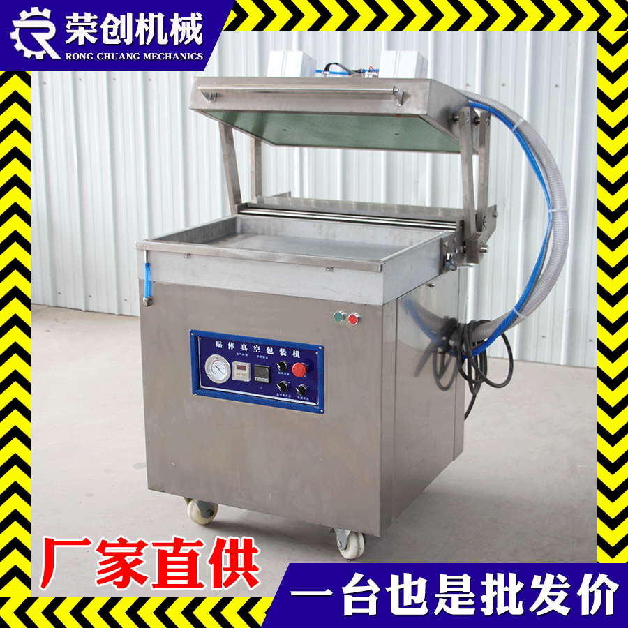榮創貼體真空包裝機是在真空狀態下,利用真空貼體膜將產品真空密封在透明真空膜和底盤之間。可保持食品、海鮮、肉類等的色澤、香味、鮮嫩度,真空貼體包裝機特具貼身包裝立體展示和真空保鮮保護之雙重功效。真空全密封式包裝,可以保持產品自然的鮮嫩、芳香、色澤和汁味。用高阻隔真空包裝膜,可阻隔氧氣,在低溫環境下抑·制好氧菌的繁殖,更長時間保鮮及保護產品的自然色澤。