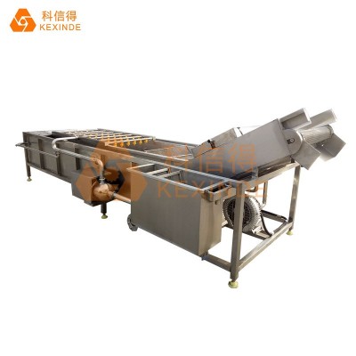 清洗機采用氣泡清洗,有效分離被清洗物表面附著物,模擬人工清洗基本動作并有效避免了人工清洗中的碰、磕、劃傷等現象,提高了工作效率,變人工作業為機械化加工。適合于各種新鮮蔬菜、鹽漬菜、菌類、海產品。根據所清洗物料比重的不同,設計了兩種型號:全網帶型、半網帶型。半網帶型適合于物料比重小于或等于水的物料,全網帶型適合比重大于水或怕碰傷的物料。