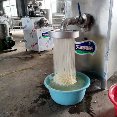 天誠米線米粉機借鑒傳統制作方法的熟化工藝革新而成的一種省工省時的淀粉熟化食品機械,生產工藝簡單易操作,淀粉加水和成稀漿倒入機器內即可,自動熟化,一次成型,節能降耗,省時省工,是鄉鎮企業及個體生產經營者、下崗工人加工粉條粉絲粉皮等淀粉制品的專業機械。