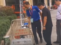 農機峰會上,給客戶展示單軌運輸車如何操作,前進后退都可以